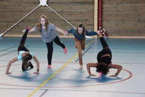 Avec quand même quelques garçons, les élèves travaillent plusieurs formes de danse et préparent des chorégraphies tout au long de l’année.