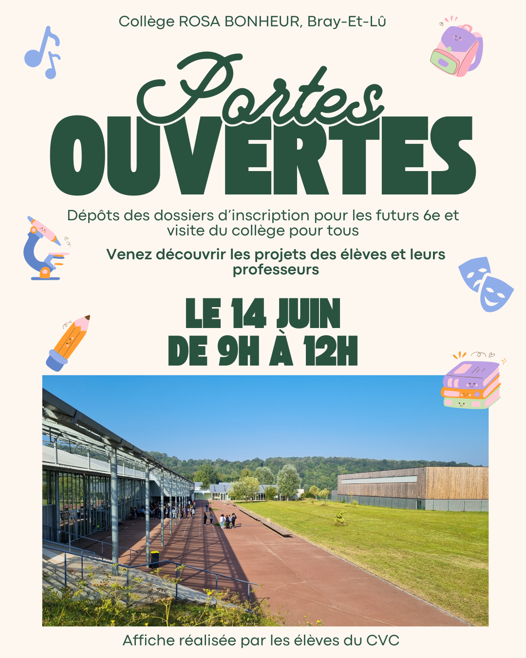 Le collège Rosa Bonheur tiendra ces portes ouvertes le samedi 14 juin de 9h à 12h, au collège.
